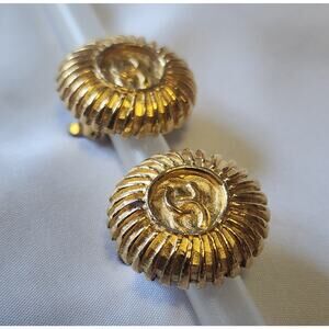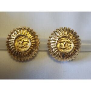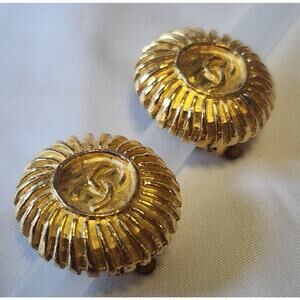 Step into the world of timeless sophistication with these exquisite authentic vintage Chanel clip-on earrings. Featuring the legendary interlocking double CC logo in gorgeous gold tone.