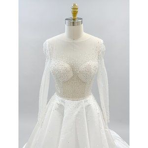 US Bridal Size 4 (EU size 8) - Transparent Illusion Long Sleeve Wedding Dress