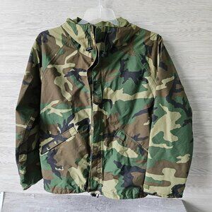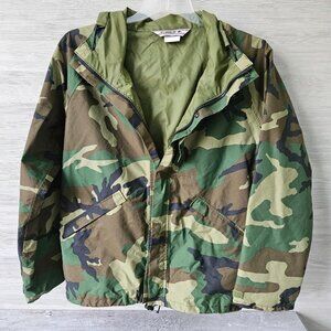 US Calvary Military Vtg Jacket Size M Nylon Gore-Tex Woodland Camo Full Zip USA