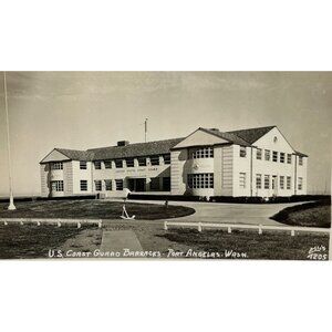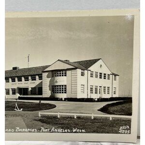 US Coast Guard Barracks RPPC Postcard Vintage Port Angeles WA 1930s