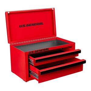 This convenient U.S. GENERAL® Mini Steel Toolbox holds up to 5 lb. per drawer (10 lb. total), making it great for organizing a variety of hand tools and accessories. This compact toolbox is ideal for use at your shop, home, or office Product Height 6 in.