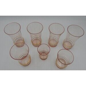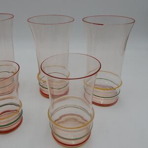 US Glass Co Painted Pin-Striped Glassware Set 6 Depression Glass Tumbler Juice