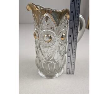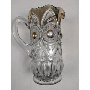 US Glass Company Pitcher Gold Bullseye & Fan Gold Trim EAPG Antique Heavy