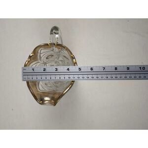 Pre-owned and in good vintage condition. There is some light scratching on the gold trim, particularly near the rim, but no chips or cracks in the glass itself. The intricate design remains vibrant and clear.