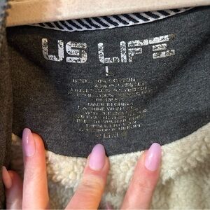 US Life Thick Fleece Lined Full Zip Grey Hoodie Men’s Size Large
