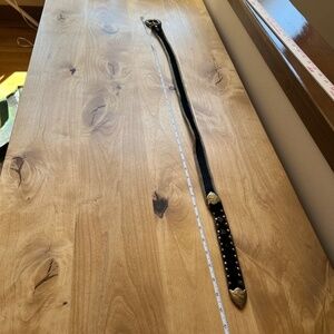 US MECO PARIS BELT VTG BLACK LEATHER METAL MESH BRONZE GROMMET STUDS WESTERN