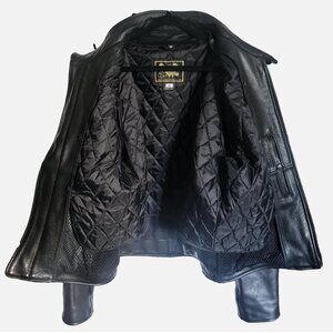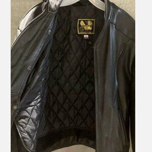 US Made Co Black Leather Jacket Padded Heavy Motorcycle Biker Mens 40 Medium