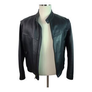 US Made Co Black Leather with Zip Out Quilted Liner Vintage Jacket Coat MOTO M L