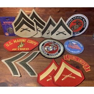 US Marine Corps Patch Set Vintage Lot of USMC Patches, Decal and Medallion