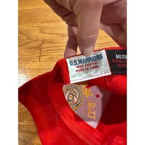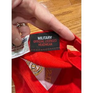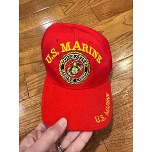 Features: Red color, Embroidered U.S. Marine logo, Curved bill, Adjustable strap