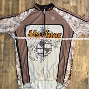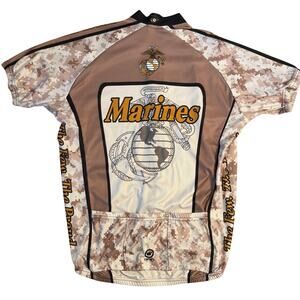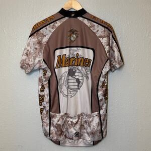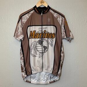 US Marines Canari Men’s Eagle Anchor Globe Full Zip Cycling Jersey Camo Tan Sz L