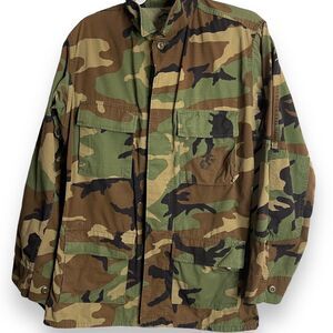 Men's camouflage military jacket. Great condition. No rips or stains. It does have a name written inside the jacket and the tags are faded.