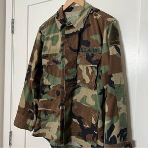 US Military Coat Shirt Small Short Hot Weather Woodland Camo Combat Old Ironside