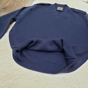 US Military Equipment Mehlin Estey Made in Britain 44R VNeck Sweater Elbow Patch