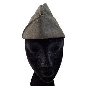 This vintage(?) US Military Garrison Cap in size 7 is made from a wool blend in a distinctive green color. Perfect for collectors of militaria, this cap embodies the theme of military history and nostalgia. Its excellent condition adds to its appeal as a unique and authentic piece that pays homage to the armed forces. The cap's iconic design and materials make it a must-have for any military enthusiast or collector looking to add a piece of military memorabilia to their collection.