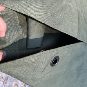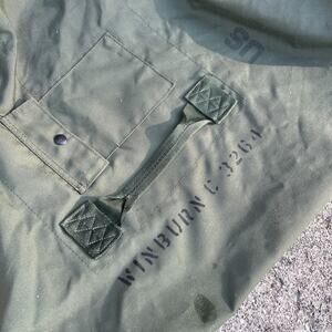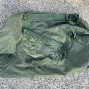 The product is a US Military OD Green Duffle Rucksack Bag, made in Vietnam. This heavy-duty backpack features sturdy Army straps and is designed for military personnel or enthusiasts interested in militaria items. With a rugged and authentic design, this backpack is perfect for outdoor adventures or as a unique collectible for military gear enthusiasts.