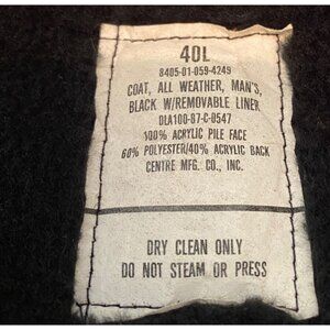 U.S. Military Trench Coat 40L Black Faux Fur Removable Liner Centre Mfg.