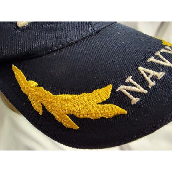 US Navy Blue Ball Cap Gold Scrambled Eggs Snapback Hook Veteran Officer Military