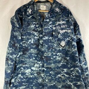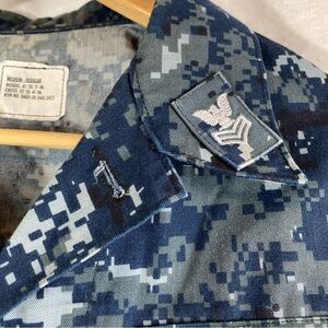 US Navy Camo Blue Working Digital Uniform Shirt Medium Button Long Sleeve