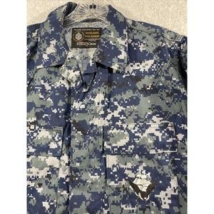 US Navy Digital Camo Jacket Mens Small Short Blue Long Sleeve Flying Cross