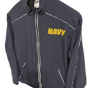 US Navy Full Zip Jacket Windbreaker Blue Yellow Long Sleeve Size Large Unisex