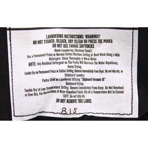 Two upper chest pockets with concealed water resistant slide fastener openings, two lower pockets with flaps and concealed hand warmer pockets, adjustable wrist tabs, a rank tab, and waist and hem drawcord adjustments that are concealed inside the lower pockets
