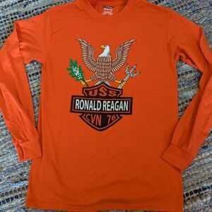 US Navy Shirt USS Ronald Reagan T-Shirt Men's S Orange L/S USN CVN 76 Pullover T