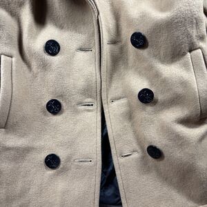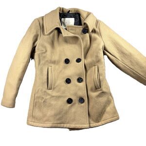 US Navy Women Pea Coat Vintage Double Breasted Buttons Lined Wool USN Tan Medium