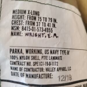 US Navy Working Uniform NWU Type III Parka Medium X-Long AOR2 12/19