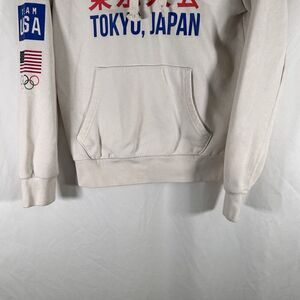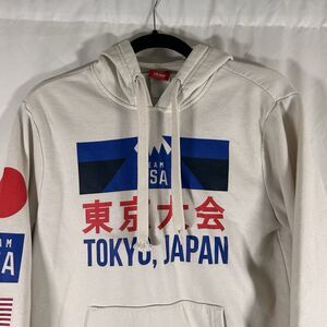 US Olympic Team Tokyo Hoodie Men's Small White Graphic Print Drawstring Pockets