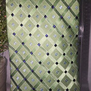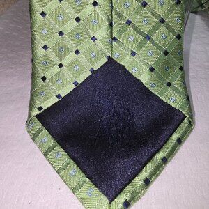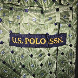 U.S. POLO ASSN. 100% SILK APPLE GREEN MENS TIE DIAMOND DESIGN EUC