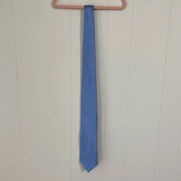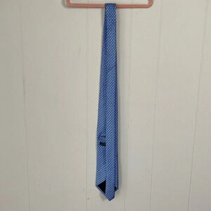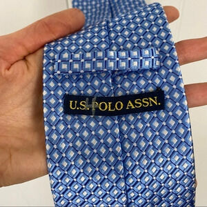 U.S. POLO ASSN. Blue White Geometric Diamond Print 100% Silk Men's Tie