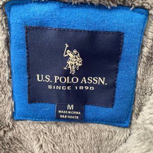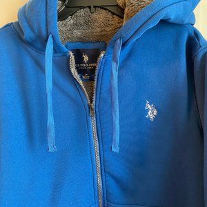 U.S. POLO ASSN Cobalt Blue Grey Sherpa Lined Full Zip Hoodie Jacket Medium NWT