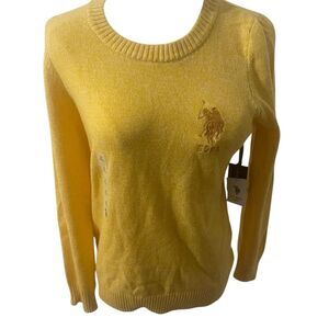 US. POLO ASSN. MARLED CREW NECK SWEATER YELLOW EMBROIDERED LOGO SIZE SMALL NEW