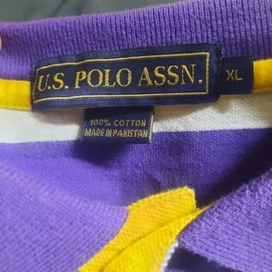 US POLO ASSN Purple White Stripe Rugby short sleeve top XL