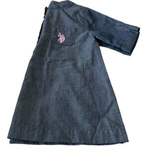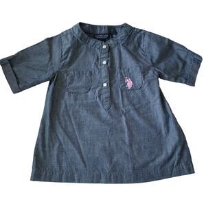 U.S. POLO ASSN. SHORT SLEEVE HALF BUTTON SHIRT, INFANT GIRL, 24 MO., DENIM BLUE