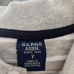 U.S. POLO Association Size 7 Polo Boys Gray White Stripe NWT