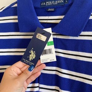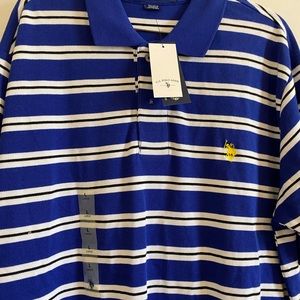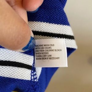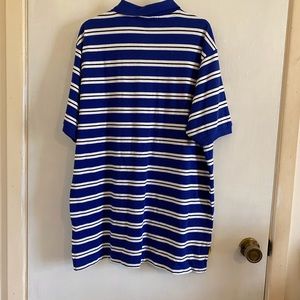 Striped blue and white polo // short sleeve//approximately 24 1/4 inches pit to pit