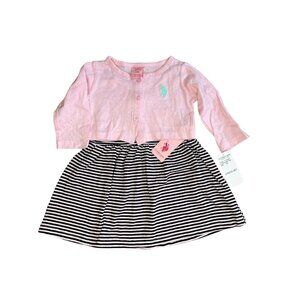 U.S. Polo Assn. Baby Girl's 2-Piece Dress Set Pink Cardigan Striped Dress 12M