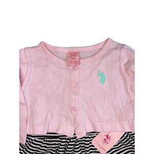 U.S. Polo Assn. Baby Girl's 2-Piece Dress Set Pink Cardigan Striped Dress 12M