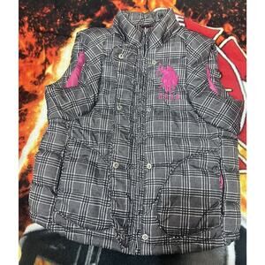 US Polo Assn Black & Gray Quilted Insulated Womens Full Zip Puffer Vest Size Sm