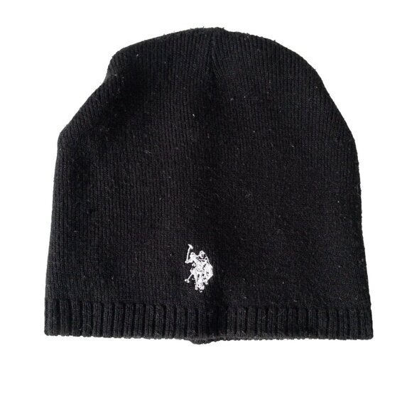 U.S. Polo Assn. Black Knit Beanie Hat With White Logo Embroidery One Size Ribbed