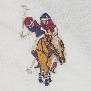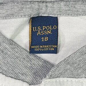 US Polo Assn. Boys Henley sz 18 White with Grey Long Sleeve 2 Player Emblem