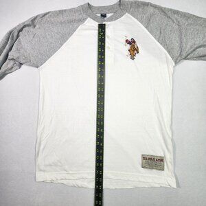 US Polo Assn. Boys Size 18 Henley White with Grey Raglan Long Sleeve with Cuff Traditional Polo 2 Player Emblem Horse