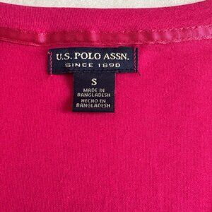 U.S. Polo Assn. Casual Womens Magenta V-Neck T-Shirt Size Small Short Sleeve Top