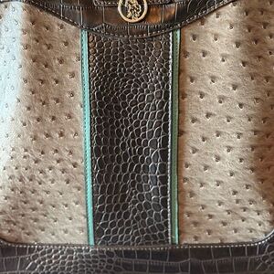 US Polo Assn Gray And Black Reptile Pattern Vinyl Shoulder Tote With Crest