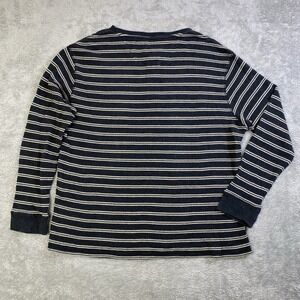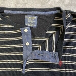 US Polo Assn Henley Shirt XL Dark Gray White Stripe Thermal Cotton Long Sleeve Chambray Trim