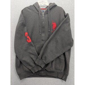 U.S. Polo Assn. Hoodie Mens 2XL Gray Full Zip Fleece Embroidered USPA 3 Sleeve