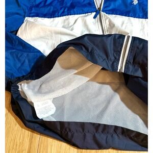 US Polo Assn Jacket Mens Size XL Full Zip Hooded Windbreaker Logo Blue & White