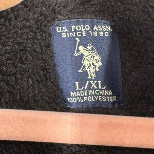 U.S. Polo Assn. Mens Black Plush Robe L/XL With Embroidered Logo
